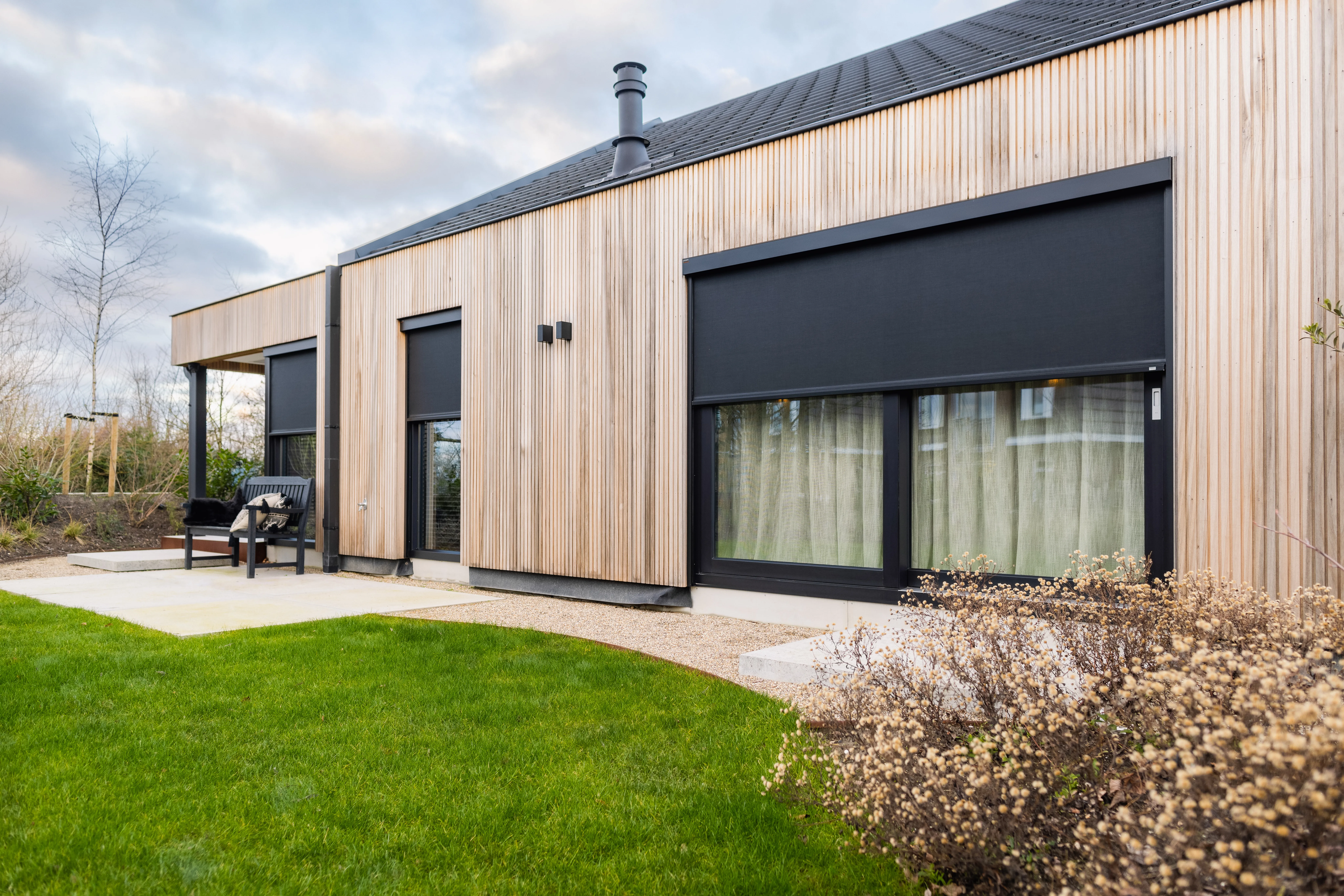 Beperken zoninstraling terwijl het zicht naar buiten behouden blijft, ook geschikt voor grotere raampartijen.