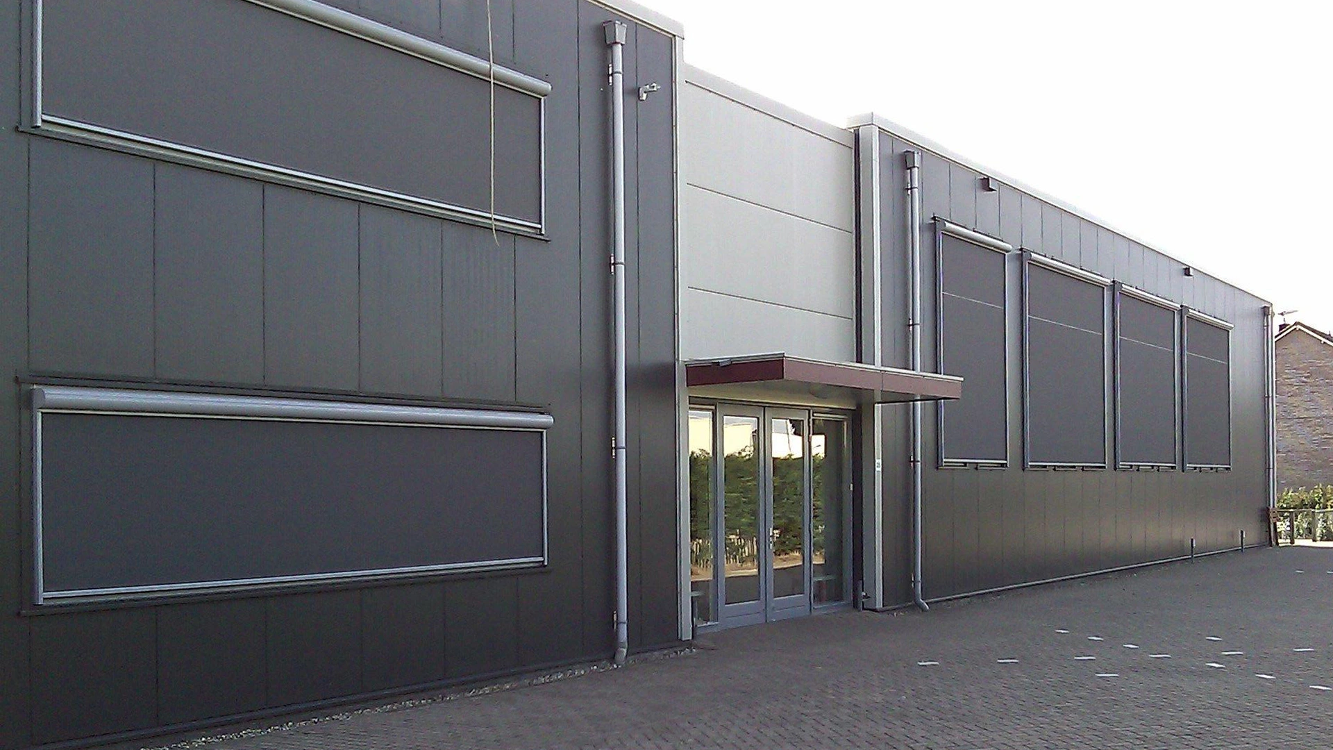 Zodra een zipSCREEN met een grote breedte wordt gecombineerd met een grote hoogte, dan kunnen er lasnaden noodzakelijk zijn omdat de stof een maximale breedte van 3200 mm heeft. Er kan in zo’n geval voor gekozen worden om de stof te draaien maar dit is dan zichtbaar. Op deze gevel is daarom de keuze gemaakt om de stof niet te draaien en is de stof dus toegepast in de breedte. In de hoge doeken zie je daardoor hoe de lasnaad is voorzien.